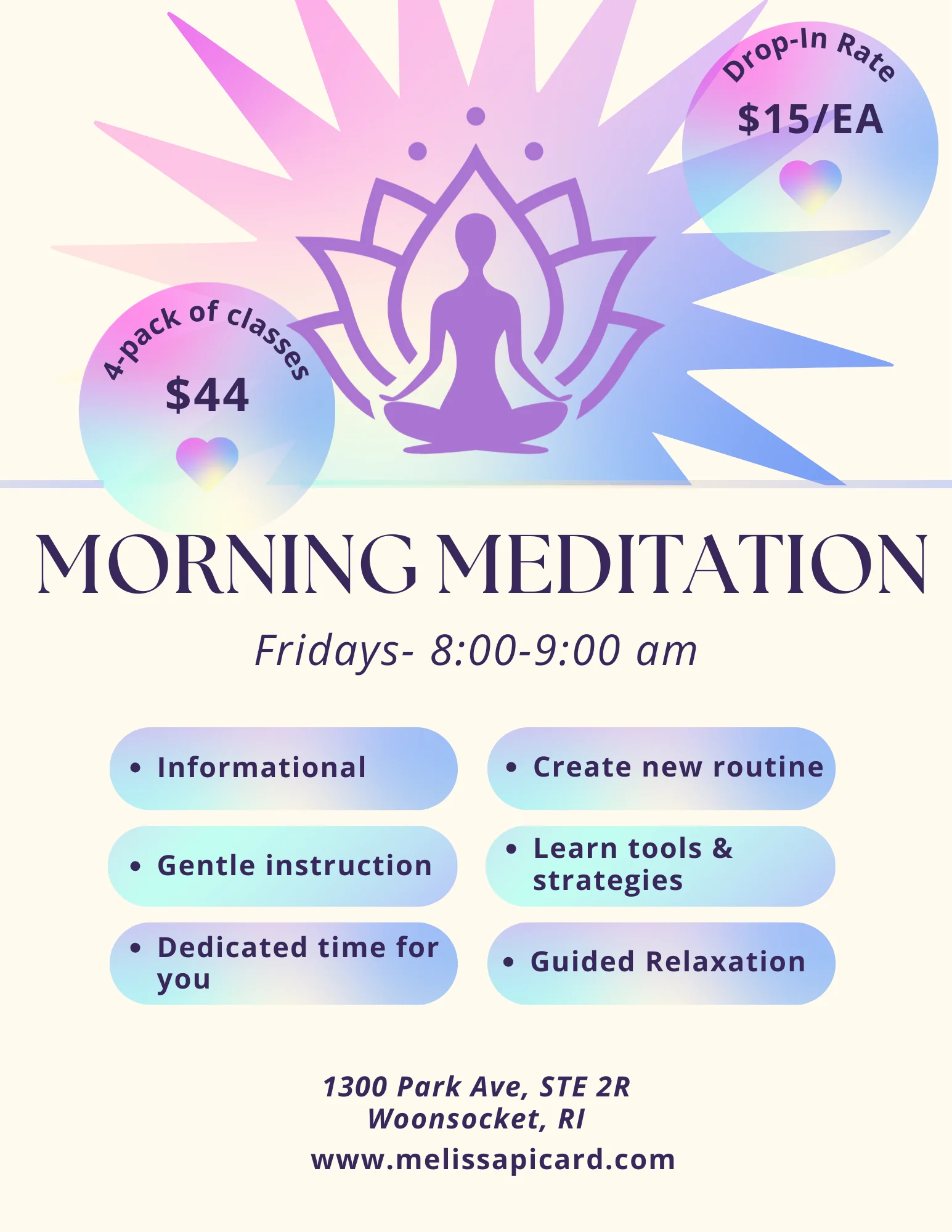 Making time for ourselves is essential to our Wellness. Grab this opportunity to get the refresh so needed for all of us. When we are feeling healthy and balanced, everyone around us benefits. There is no greater gift we can offer to one another than that of taking care of YOU!